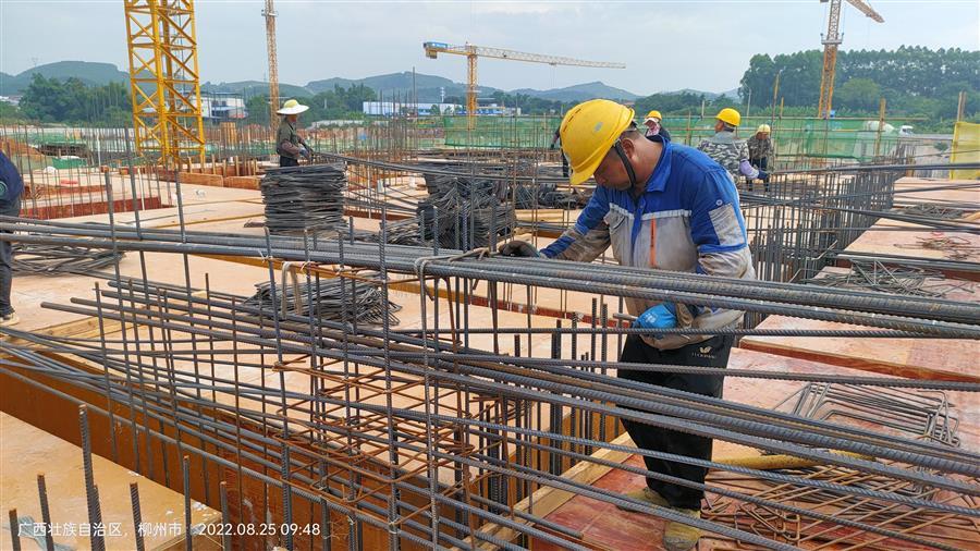 為了確保按時間節(jié)點完成工作量,項目部想方設法克服各種困難,在做好疫情防控及防暑降溫保障措施工作的同時,認真抓好施工現(xiàn)場的安全和質(zhì)量管理工作。當前,項目每天有200多人的鋼筋班組、木工班組、外架班組、滿堂架班組和混凝土班組在現(xiàn)場有序進行安裝模板、搭設支架、綁扎鋼筋等工作。