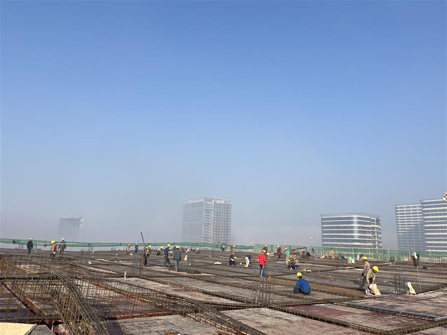 北部生態(tài)新區(qū)智能機器人標準廠房(二期)1#、2#、5#、7#標準廠房、13#、14#甲類庫房工程項目部統(tǒng)籌調(diào)配資源,科學組織施工,認真抓好項目建設(shè)。該項目總建筑面積10.8萬平方米,目前1#標準廠房主體驗收完成,2#標準廠房樁基礎(chǔ)50%,5#標準廠房1-10軸底板墊層完成,11-27軸主體結(jié)構(gòu)封頂。
