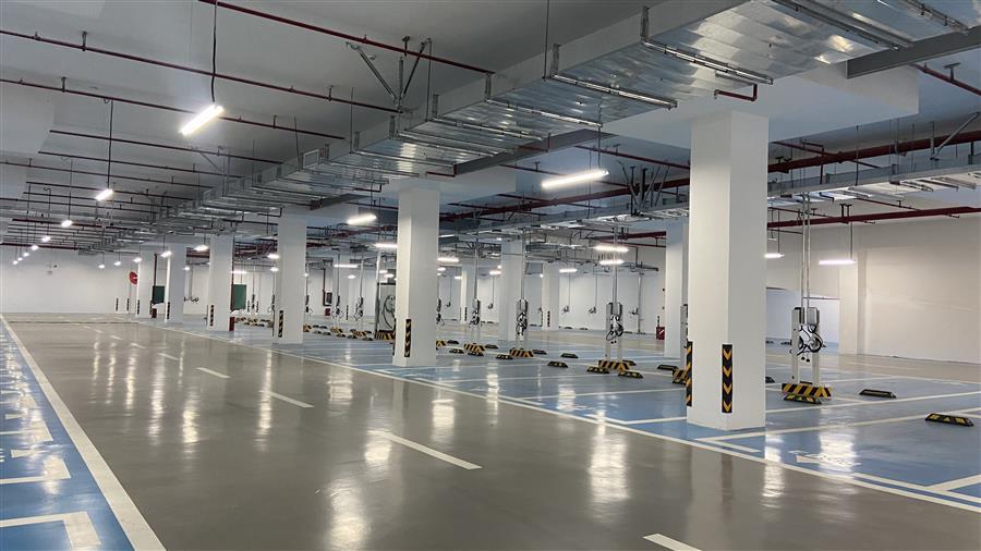 項(xiàng)目總建筑面積約2.7萬平方米,為一座兩層局部覆土式地上停車庫,建設(shè)內(nèi)容包含停車場(chǎng)、地面廣場(chǎng)鋪裝及綠化、給排水、電氣、消防等附屬工程。項(xiàng)目建成將新增600個(gè)機(jī)動(dòng)車位,其中負(fù)二層510個(gè)機(jī)動(dòng)車位,負(fù)一層78個(gè)有充電樁的新能源停車位,屋面12個(gè)無障礙車位;另外,停車庫屋面設(shè)有283個(gè)非機(jī)動(dòng)車位。綠地率為60%。停車場(chǎng)內(nèi)部空間寬敞明亮,外觀看像是地下停車庫,但實(shí)際上由于該區(qū)域地勢(shì)較低,為合理規(guī)劃,特意將停車庫設(shè)計(jì)為地上兩層局部覆土式停車庫,即在停車庫上方回填泥土,在泥土上種植綠化樹木,將車庫上方裝點(diǎn)成一個(gè)小公園。項(xiàng)目交付運(yùn)營,有效緩解三門江森林公園周邊“停車難”問題。