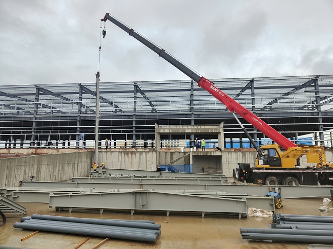 7月31日上午10點(diǎn)18分,冶建公司第四分公司承建的內(nèi)蒙古呼和浩特市武川縣10萬(wàn)噸冷鏈物流新建項(xiàng)目2#冷庫(kù)首個(gè)鋼結(jié)構(gòu)緩緩起吊、精準(zhǔn)就位。首吊的圓滿成功,標(biāo)志著項(xiàng)目2#冷庫(kù)全面進(jìn)入鋼結(jié)構(gòu)施工階段。