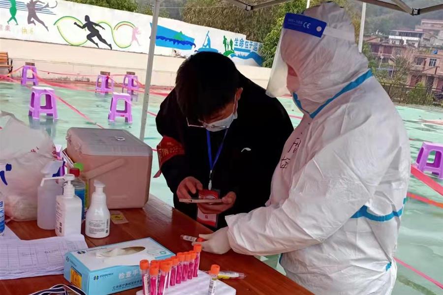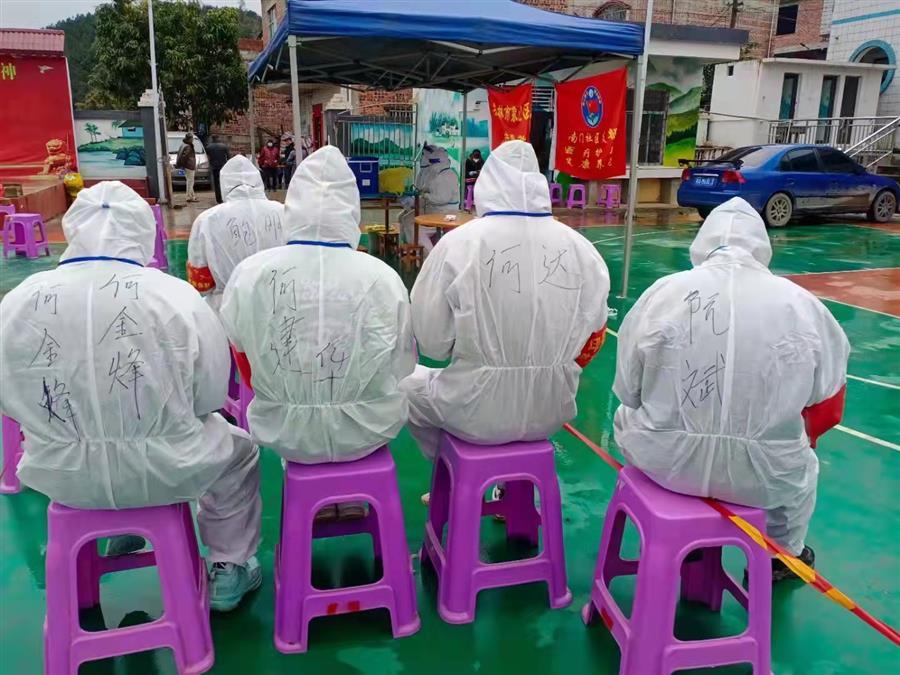2月7日,阮斌在百色市田東縣印茶鎮(zhèn)那板村六內(nèi)屯青年志愿者隊參加志愿者工作。他每天除了協(xié)助醫(yī)務(wù)人員進行核酸檢測,還要與其他志愿者在村口站崗,仔細檢查每一位村民的兩碼并測量體溫。遇到不配合工作的老人,他還會耐心解釋當(dāng)前疫情防控政策,勸說他們不要離鄉(xiāng)走動,配合防疫工作人員做好疫情防控工作。不站崗時,阮斌會和其他青年志愿者一起上門宣傳疫情防護知識,幫助村民做核酸檢測前的信息錄入。有些老人不會使用手機,阮斌便耐心將操作流程演示給老人看,再讓老人自行操作一次,遇到老人忘記操作的步驟時,阮斌會一次又一次地演示,直到老人可以記住全部操作流程。