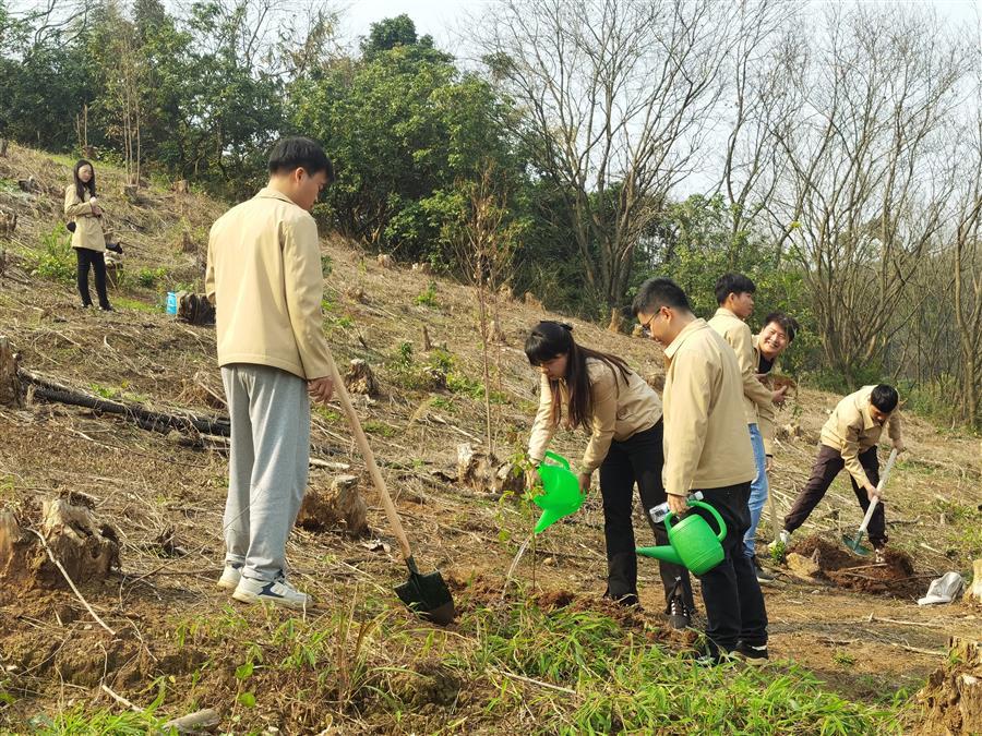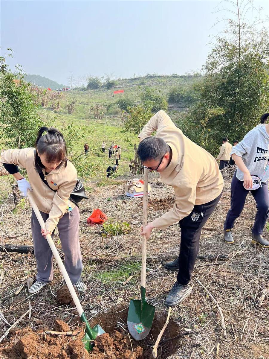 本次活動(dòng),共有60余名公司志愿者參加,共計(jì)栽植楓香、楠木和紅椿3類苗木60株。