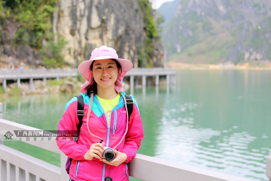 2017年4月22日,黃文秀與記者一起在凌云縣采訪時留下的照片。 記者 陳 強 攝